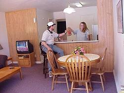 living and dining areas, private bath, and kitchen. There are also efficiencies
